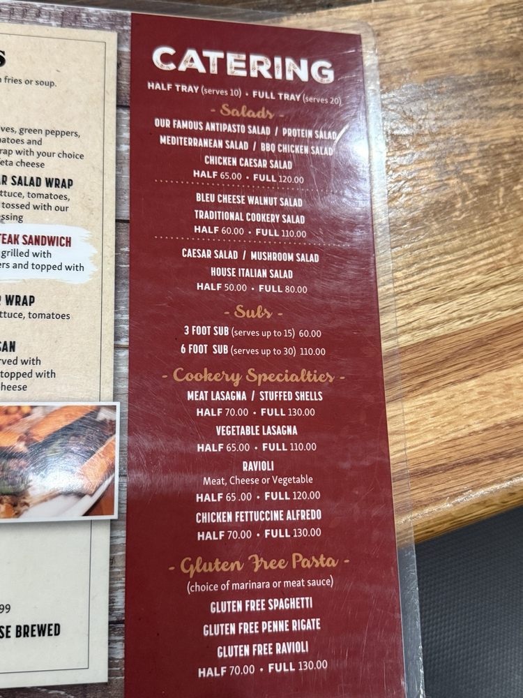The menu boasts a variety of specialty pizzas, including the delectable Cookery Works loaded with meats and fresh toppings, and the delightful Margherita, featuring fresh basil and olive oil. For those seeking unique flavor profiles, the Gourmet Pizza with artichoke hearts and sundried tomatoes is a must-try.